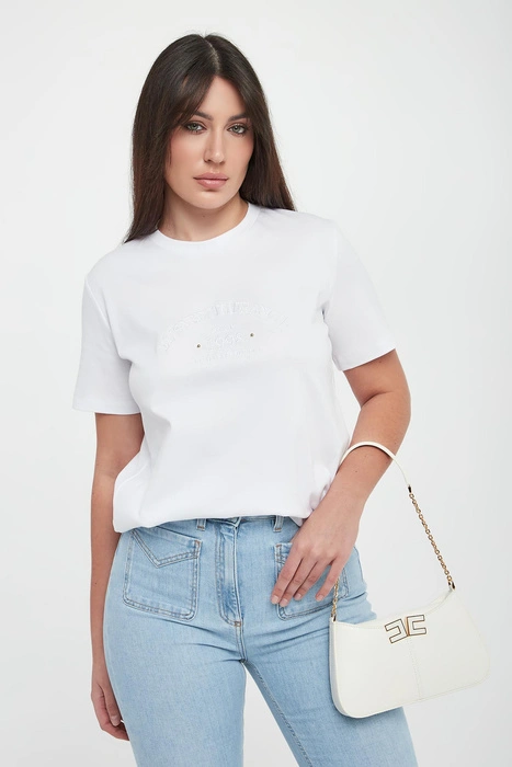 T-shirt damski z logo ELISABETTA FRANCHI Biały Regular