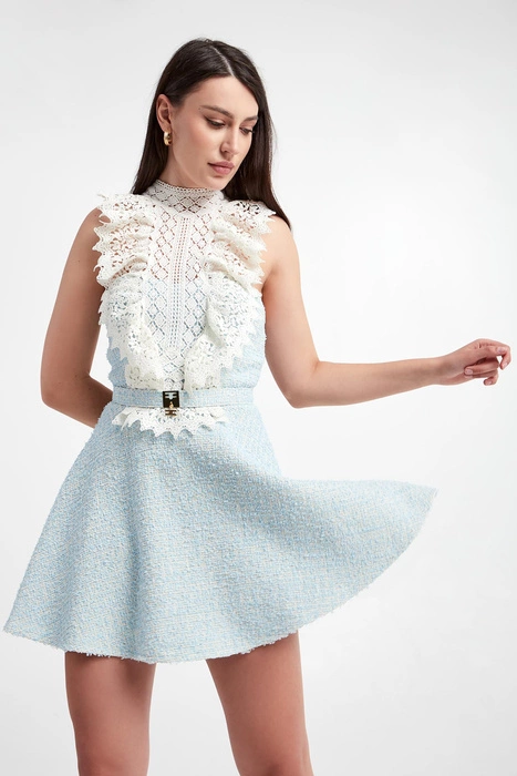 Sukienka tweedowa ELISABETTA FRANCHI Błękitny Slim