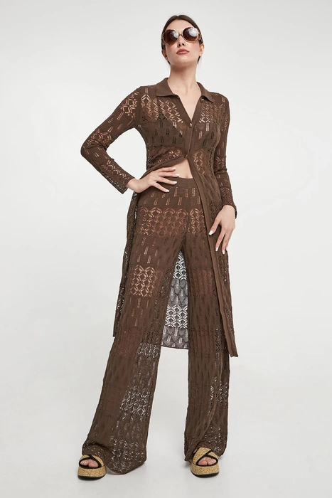 Kardigan damski ażurowy maxi LIU JO Brązowy Regular