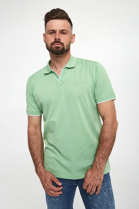 Polo męskie z logo KARL LAGERFELD Zielony Regular