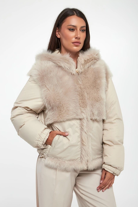 Kurtka damska dwustronna z futrem PESERICO Beżowy Regular