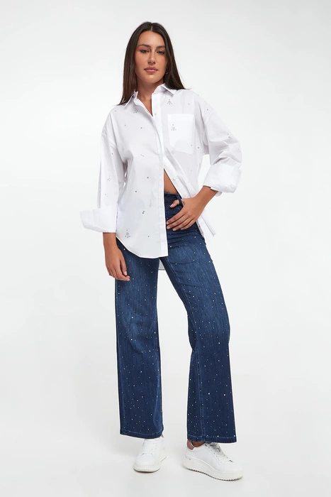 Jeansy damskie z kryształkami JOSEPH RIBKOFF Granatowy Straight