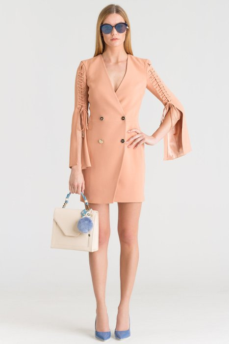 Żakiet damski z ekoskóry ELISABETTA FRANCHI Kamelowy Slim