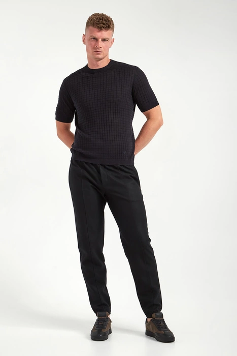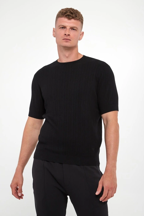 T-shirt męski dzianinowy z kaszmirem EMPORIO ARMANI Czarny Regular