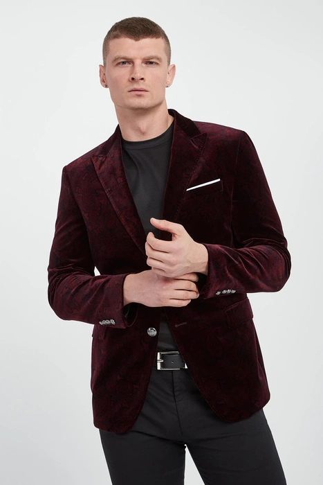 Marynarka męska welurowa Horace-Velvet JOOP! Bordowy Slim