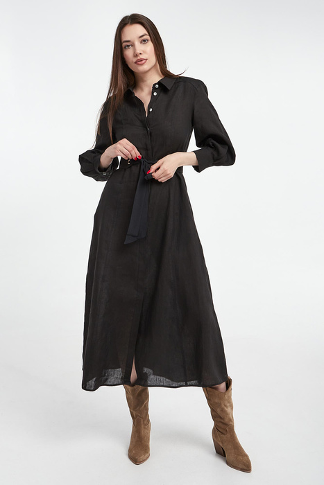 Sukienka lniana Estasi MARELLA MONOCHROME Czarny Regular