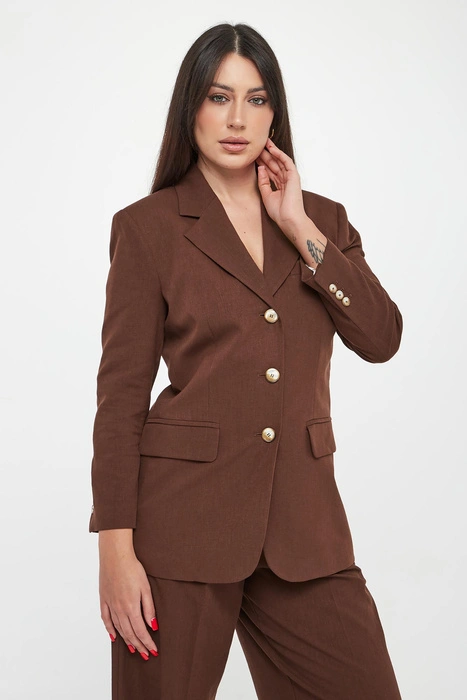 Marynarka damska z lnem MLSCACHI MARELLA SPORT Brązowy Regular