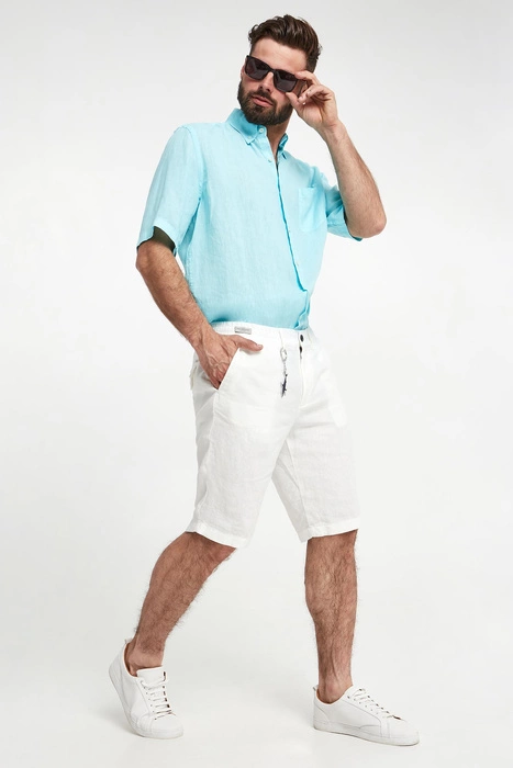 Koszula męska lniana z krótkim rękawem PAUL&SHARK Turkusowy Regular