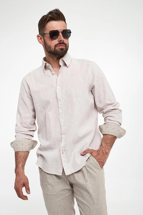Koszula męska lniana Hanson JOOP! JEANS Beżowy Regular