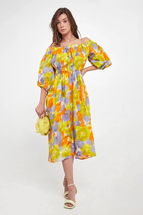 Sukienka lniana Acqui MARELLA Wielokolorowy Regular