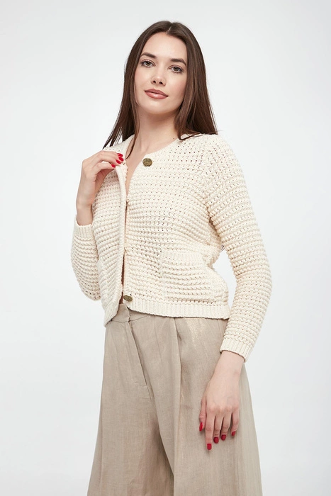 Kardigan damski dziergany Note MARELLA SPORT Ecru Regular