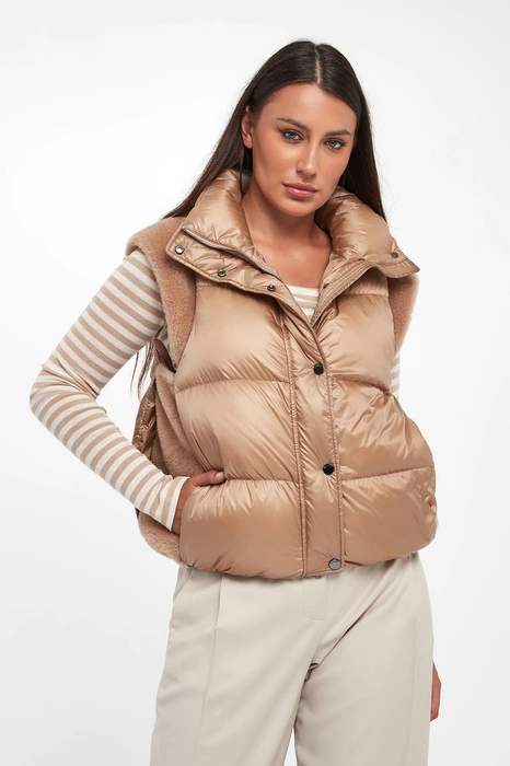 Kamizelka damska pikowana PESERICO Kamelowy Regular
