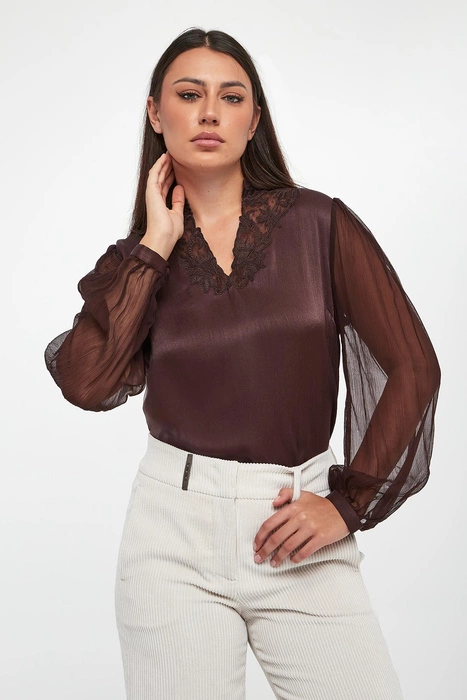 Bluzka damska z wiskozowej krepy TWINSET Brązowy Regular