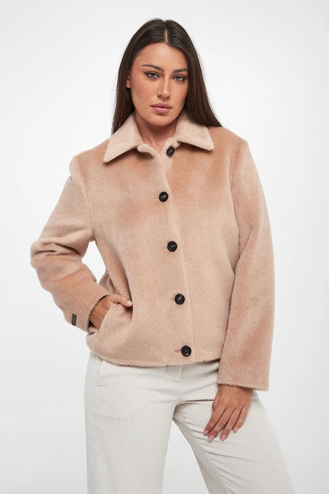 Płaszcz damski krótki z alpaki PESERICO Kamelowy Relaxed