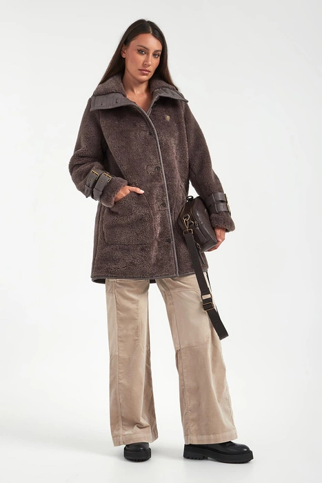 Kożuch + rękawiczki damskie AERONAUTICA MILITARE Brązowy Regular