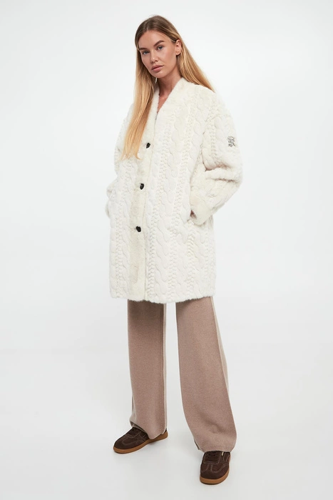 Kożuch damski ERMANNO FIRENZE Ecru Regular