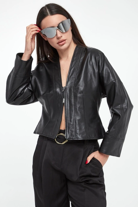 Kurtka damska skórzana ELISABETTA FRANCHI Czarny Slim