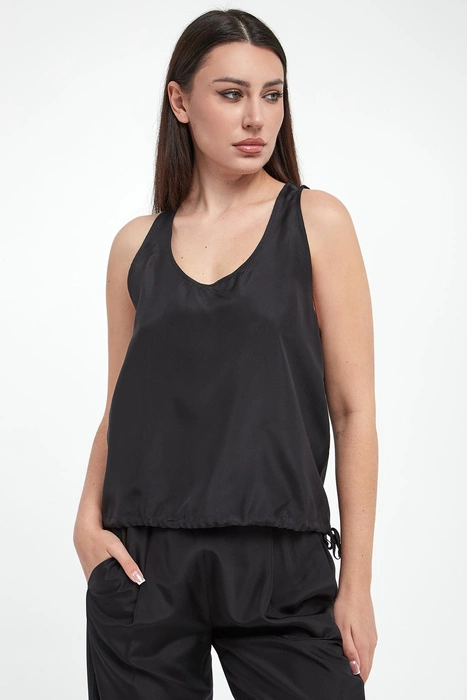Top damski jedwabny Meana MARELLA MONOCHROME Czarny Regular