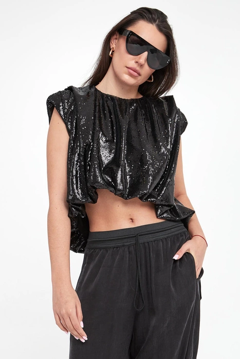Bluzka damska cekinowa Blink MMC STUDIO Czarny Relaxed