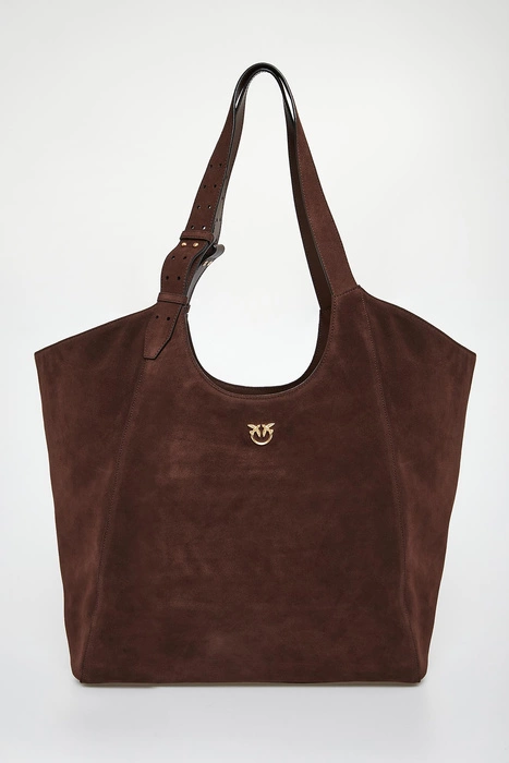 Torebka damska zamszowa skóra shooper PINKO Brązowy