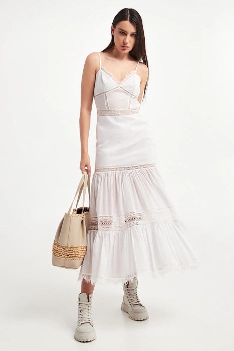 Sukienka lniana PATRIZIA PEPE Biały Slim