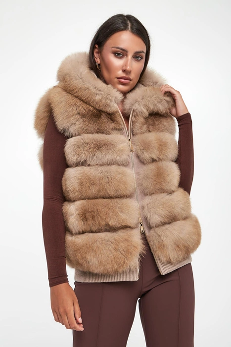 Kamizelka damska futrzana z lisa dwustronna SUPREMA Beżowy Regular