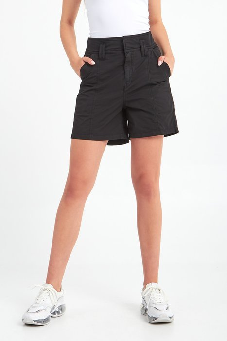 Kolejna propozycja z tej kategorii to czarne spodenki w modnym fasonie paperbag marki AERONAUTICA MILITARE. Omawiany model ma aż cztery kieszenie. Na tylnej znajduje się tłoczona aplikacja z nazwą marki, dodatkowo zdobiona brokatem. Spodenki wykonane z wysokiej jakości tkaniny bawełnianej z dodatkiem elastanu - są wygodne i dopasowują się do kobiecej sylwetki.