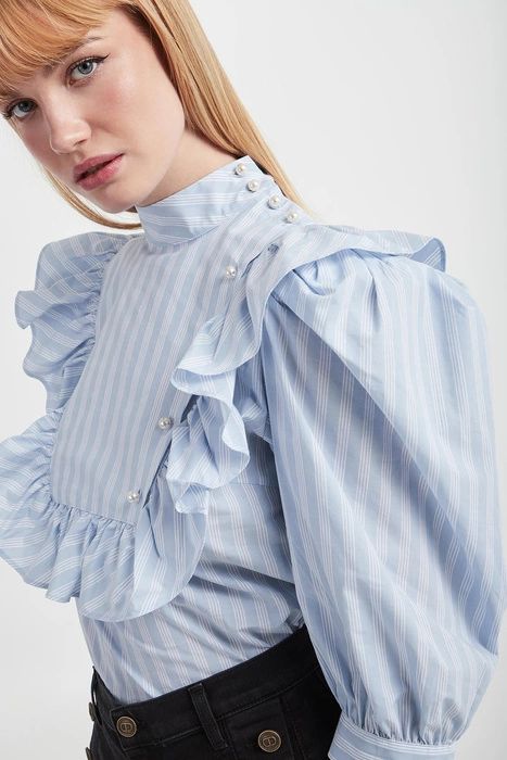 Koszula damska z żabotem CUSTOMMADE Błękitny Regular