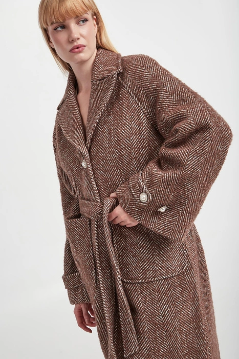 Płaszcz damski wełniany CUSTOMMADE Brązowy Regular