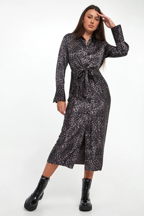 Sukienka szmizjerka w panterkę DKNY Szary Regular