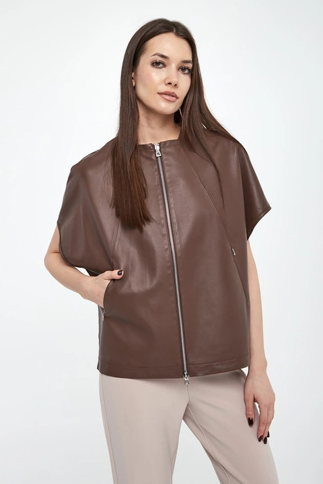 Kamizelka damska dwustronna futrzana DIEGO M Czekoladowy Relaxed