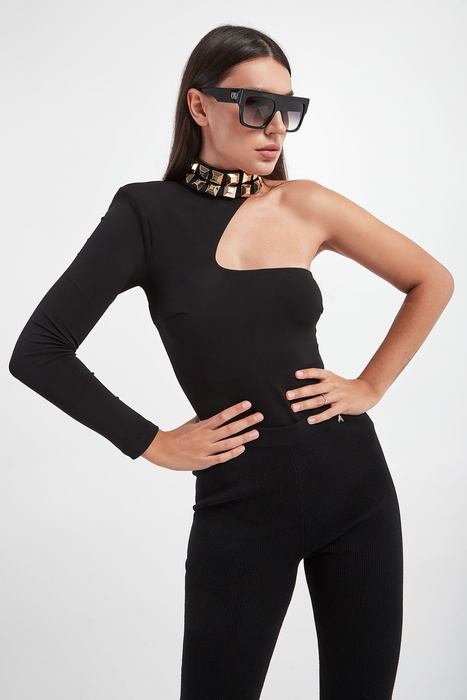 Bluzka damska z marszczeniami ELISABETTA FRANCHI Czarny Slim