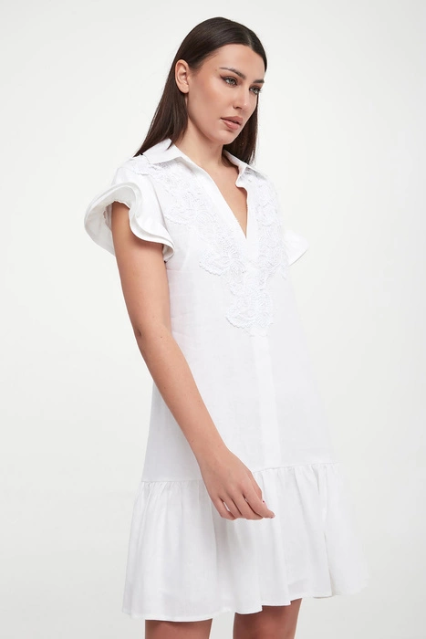 Sukienka lniana mini ERMANNO FIRENZE Biały Regular