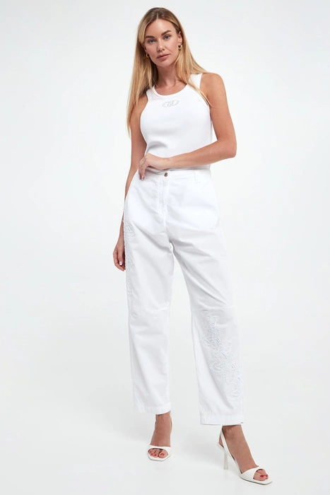 Spodnie damskie koronkowe ERMANNO FIRENZE Ecru Straight