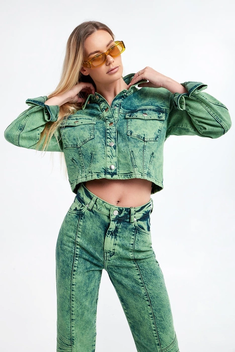 Katana jeansowa damska GESTUZ Zielony Oversize