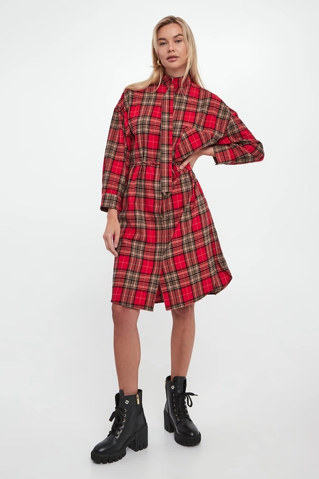 Sukienka koszulowa w kratkę Danny JOOP! JEANS Czerwony Regular