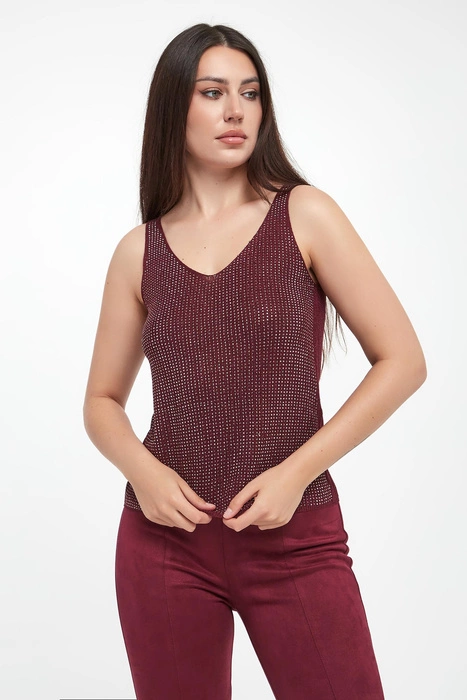 Top damski z cyrkoniami JOSEPH RIBKOFF Bordowy Regular