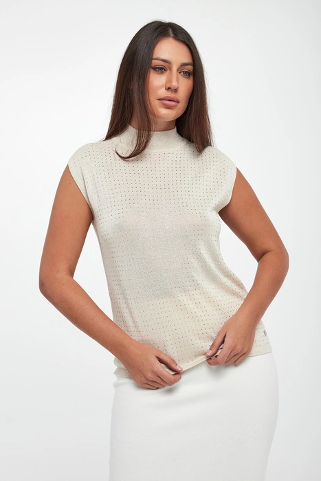 Top damski z cyrkoniami JOSEPH RIBKOFF Ecru Regular