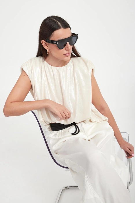 Bluzka damska cekinowa Blink MMC STUDIO Beżowy Relaxed