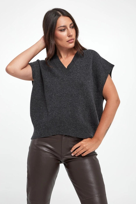Kamizelka marki Marella została wykonana z wysokogatunkowego materiału o dużej wytrzymałości. Jej funkcjonalne, pikowane bezrękawniki mają nieco dłuższy fason typu regular. Po bokach wszyto lampasy wykonane z prążkowanego materiału w tym samym kolorze co kamizelka. Marella oferuje także blezery, kurtki i trencze z paskiem bez rękawów, które z powodzeniem mogą zastąpić lekkie płaszcze.