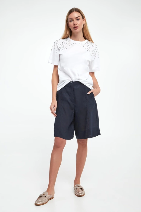Spodenki damskie z lnem Egadi MARELLA MONOCHROME Granatowy Regular