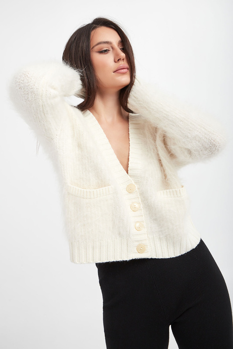 Kardigan damski ażurowy PATRIZIA PEPE Ecru Regular
