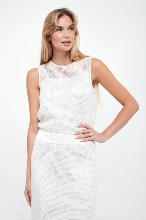 Top damski z jedwabiem PESERICO Biały Regular