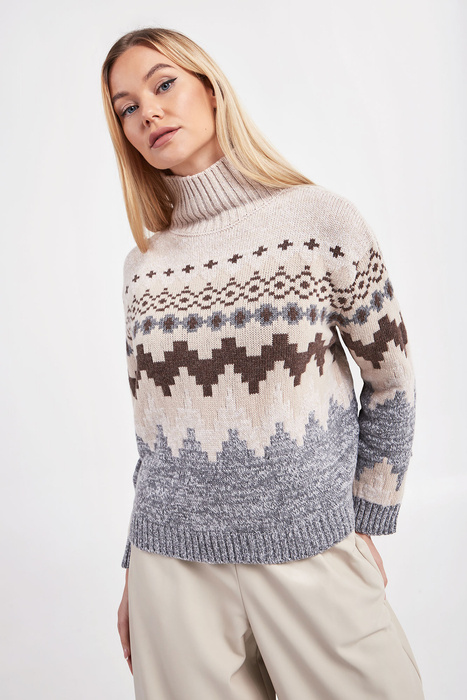 Sweter damski z wełny dziewiczej Ghianda WEEKEND MAX MARA Beżowy Regular