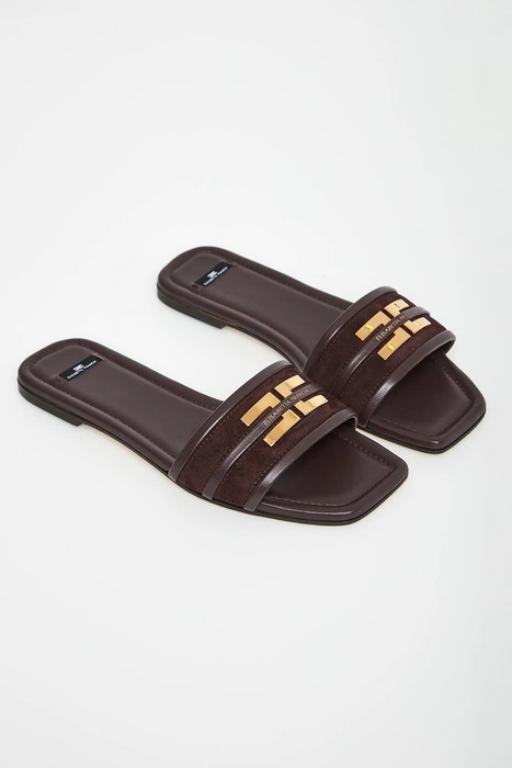 Klapki Mule damskie zamszowe PESERICO Brązowy