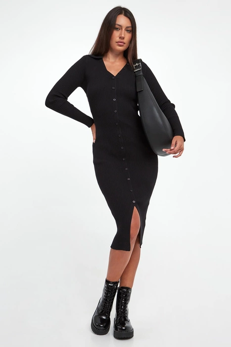 Sukienka prążkowana midi DKNY Czarny Slim