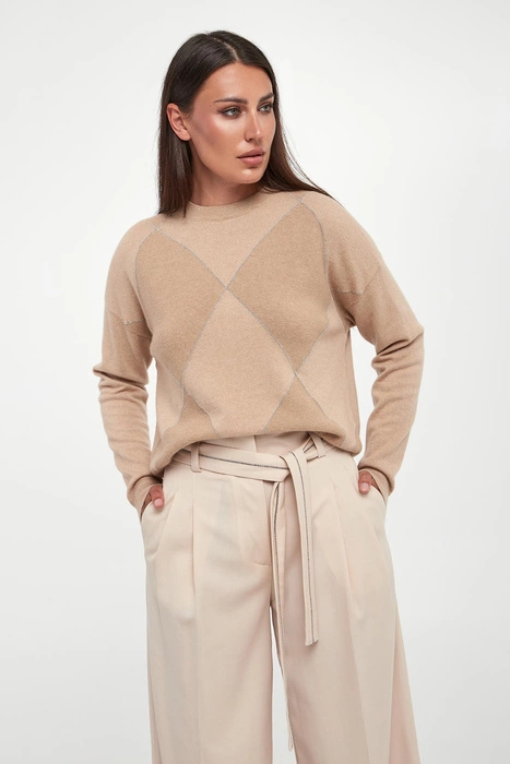 Sweter damski z jedwabiem i kaszmirem PESERICO Kamelowy Regular