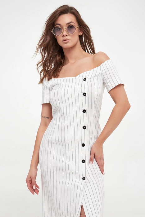Sukienka lniana Giberna MARELLA Biały Regular