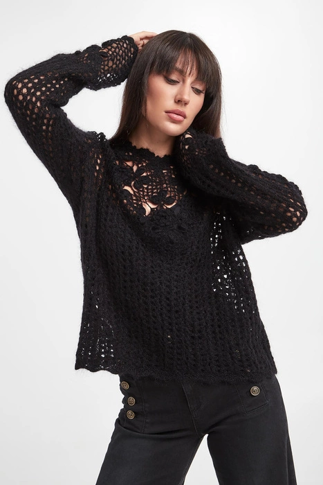 Sweter damski ażurowy TWINSET Czarny Relaxed