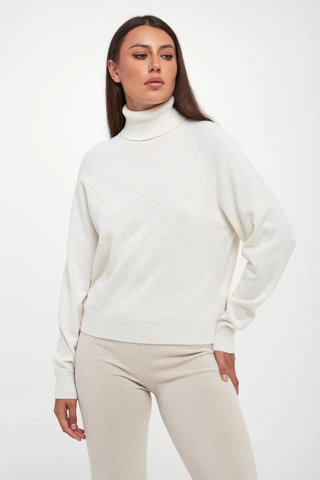Golf damski wełniany z jedwabiem PESERICO Ecru Regular